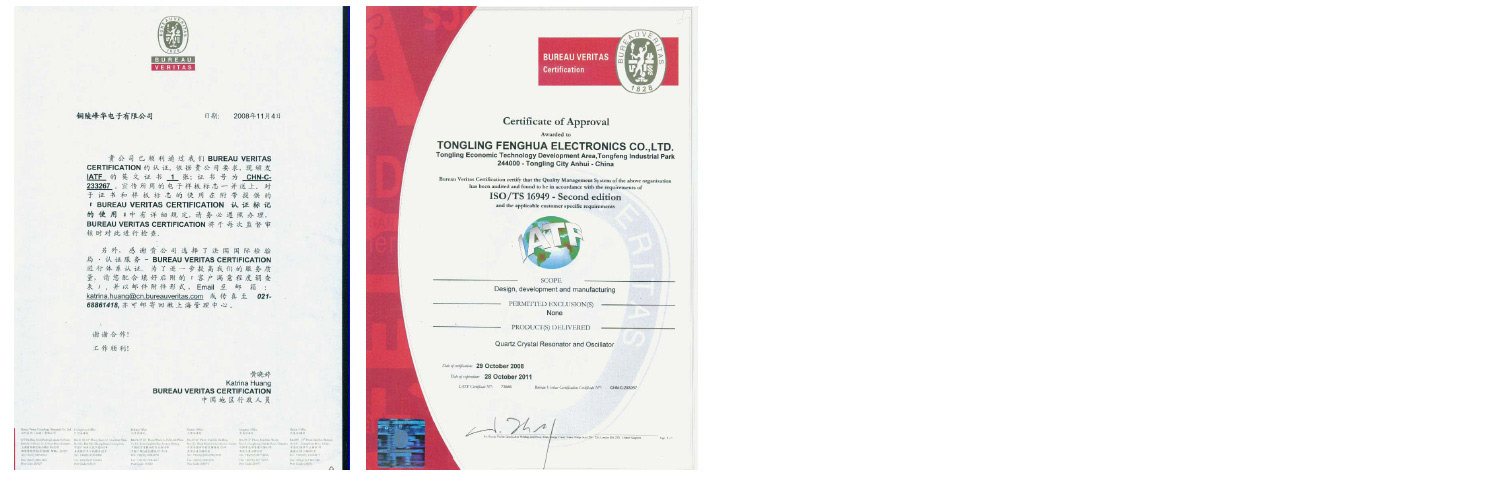 铜陵市峰华电子有限公司,主要产品 为石英晶体谐振器。是上市公司——安徽铜峰电子股份有限公司控股子公司 (国家重点高新技术企业),安徽省高 新技术企业,位于铜陵经济技术开发区 铜峰工业园,公司注册资金3000万 元,总资产8000多万元,工厂建筑面 积6000平方米。 公司关键设备从日本、美国、德国引进。 制造设备,采用日本昭和、先锋等公司引进,具有精密度易调整等特点;测试 设备,采用国际通用的美国S&A公司的250B晶体测试系统测试,测试的频率精 度在1ppm内,电阻精度在2Ω内; 采用日本工艺技术和管理模式,严格的质量管控及检测,保证了产品制造中的一致性和可靠性。